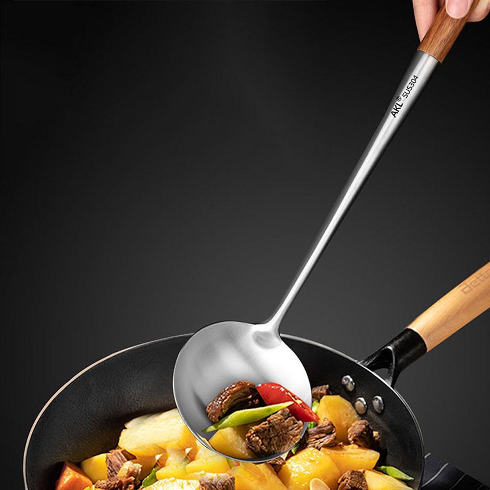 Удлиненные кухонные инструменты для шеф-повара, нержавеющая сталь, лопатка для супа, половник, воковая лопатка, кухонная ложка