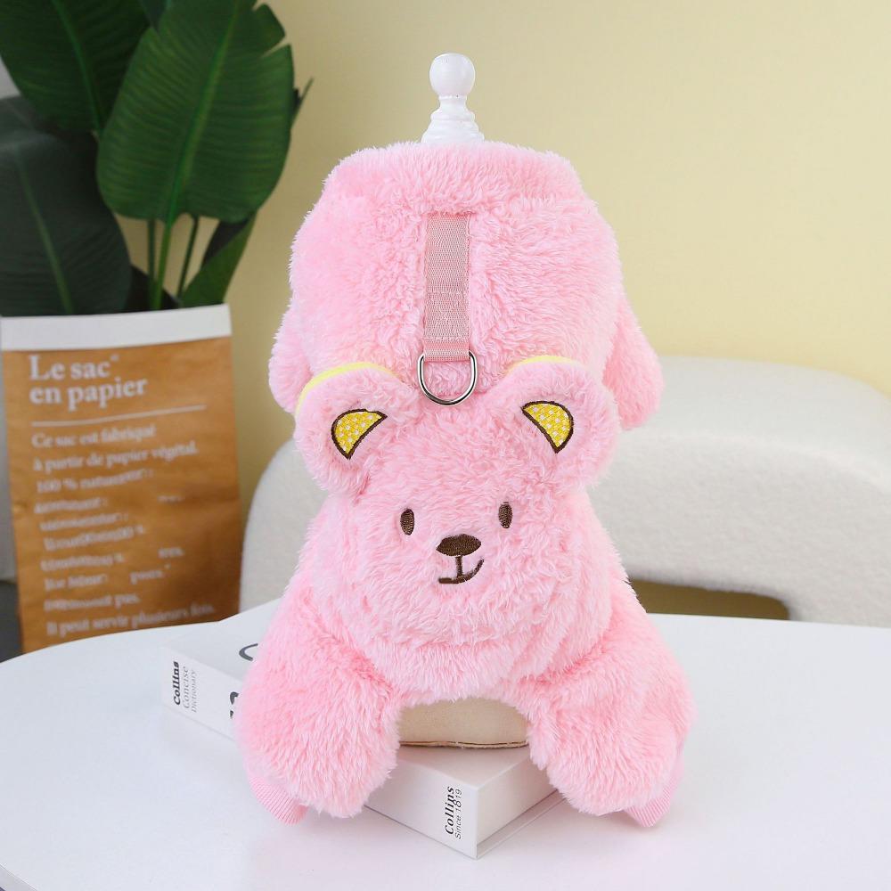 Bear Pattern Dog Warm Jumpsuit Cartoon Puppy Four Legs Clothes For Autumn and Winter