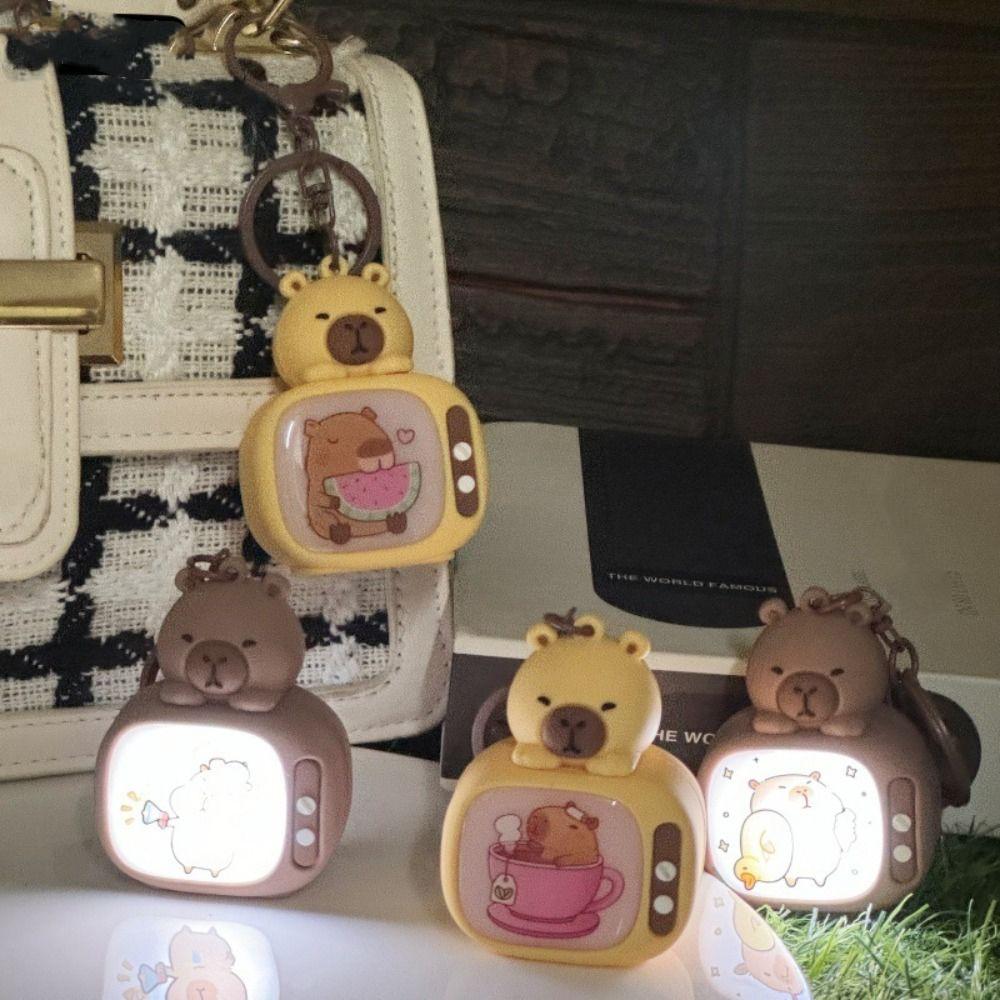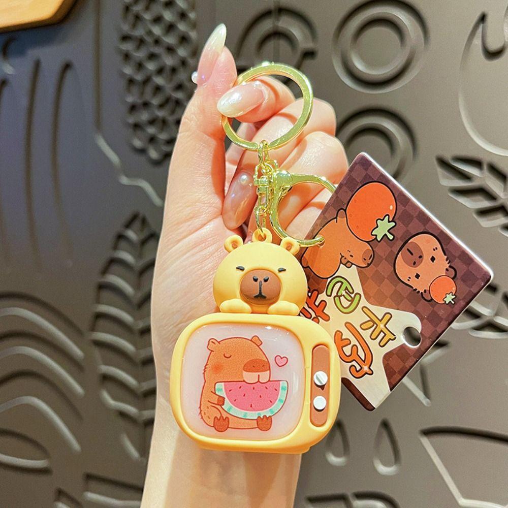 TV Style Capybara Luminous Keychain Tea Cup Shower Cute Animal Keychain Bag Decor