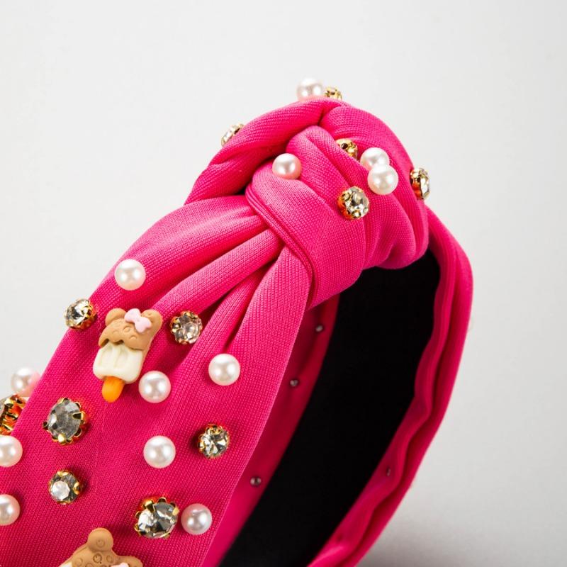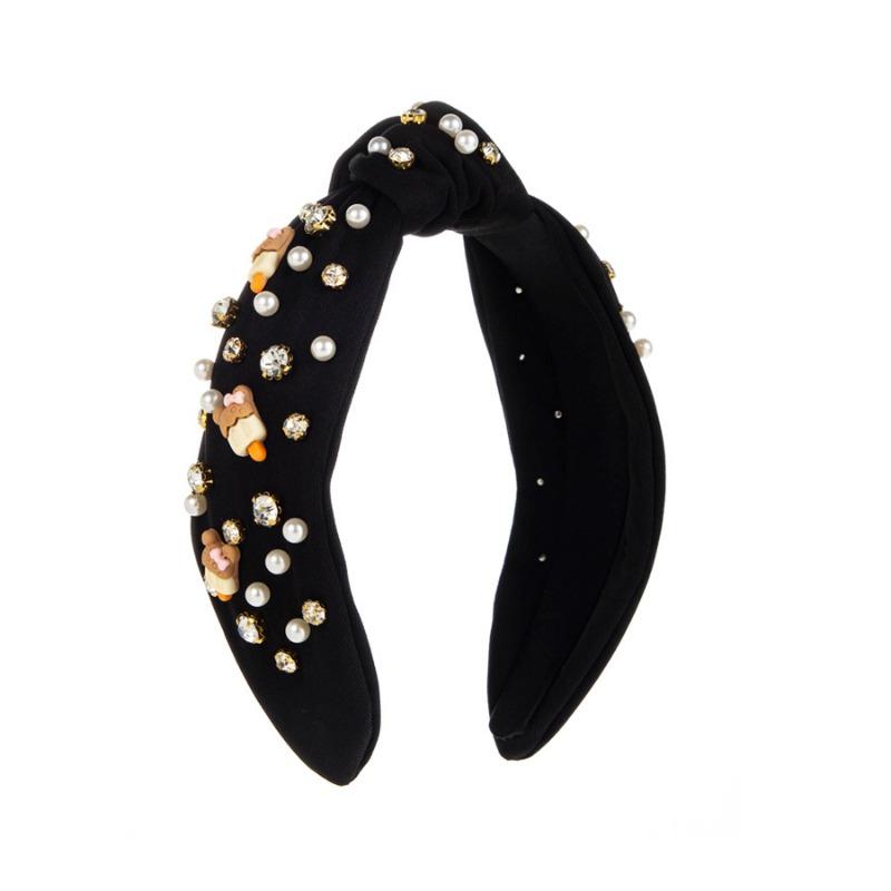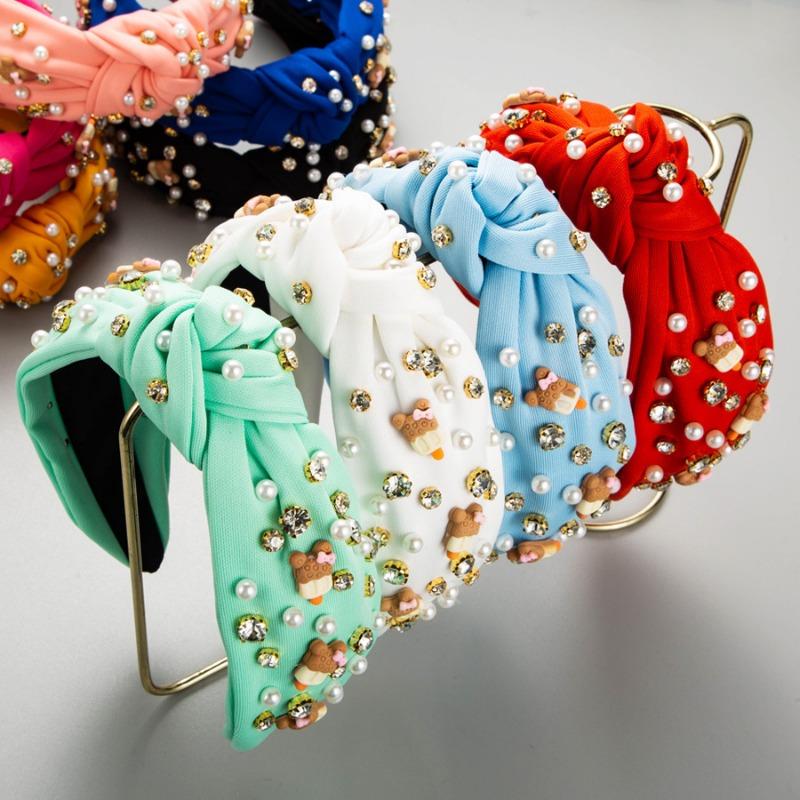 Повязка для волос «Гармония», трансграничная европейская и американская ткань ярких цветов, повязка на голову с широким узлом и бриллиантовым жемчугом, милые корейские украшения для волос