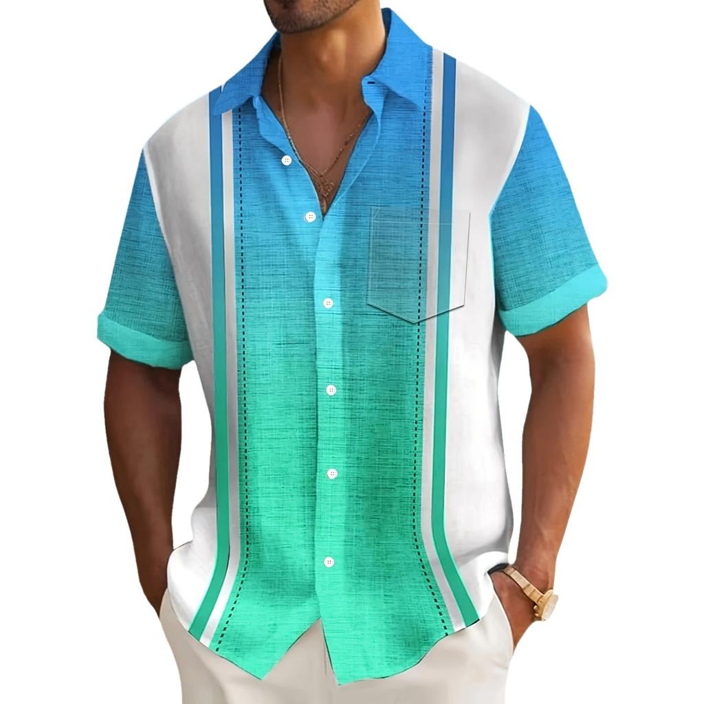 Мужская рубашка с короткими рукавами и карманом на пуговицах в гавайском стиле с полосатым принтом