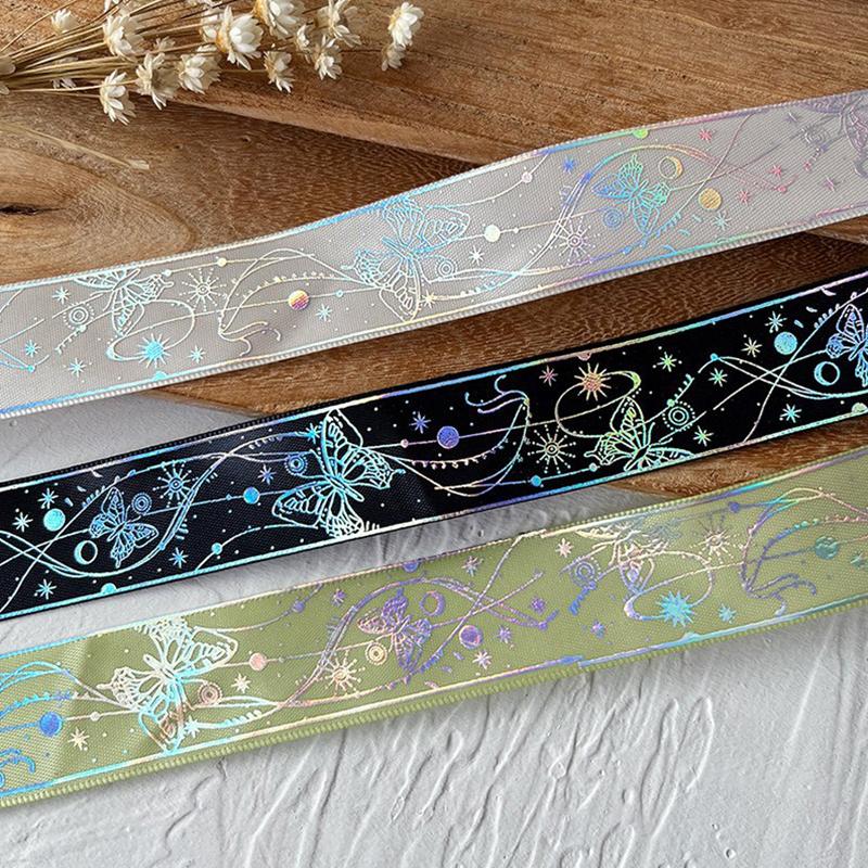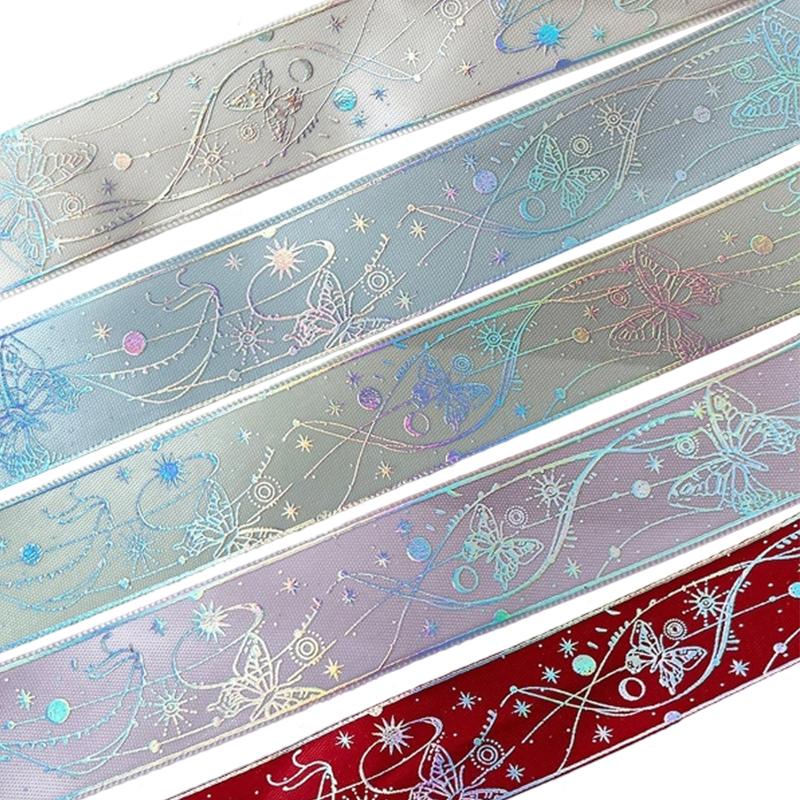 1 рулон ленты-бабочки, шелковая лента, полиэстеровая лента с напечатанным узором, лента с горячим тиснением, товары для творчества 2,5x450 см