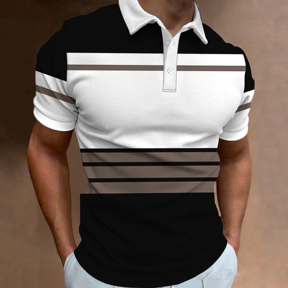 Новая мужская рубашка поло в полоску с принтом, простая мужская одежда, летняя повседневная свободная рубашка с короткими рукавами, модная дышащая толстовка