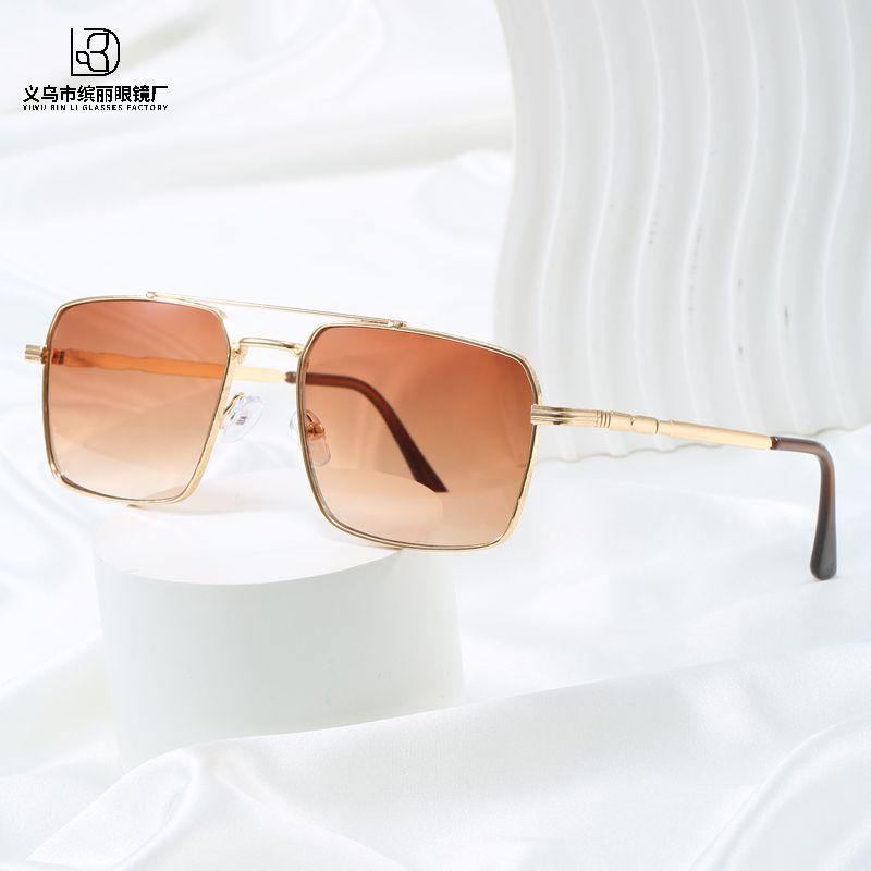 Солнцезащитные очки для взрослых с большой оправой, модные, с двумя лучами, квадратной оправой, для мужчин и женщин, для активного отдыха, универсальные, металлические очки