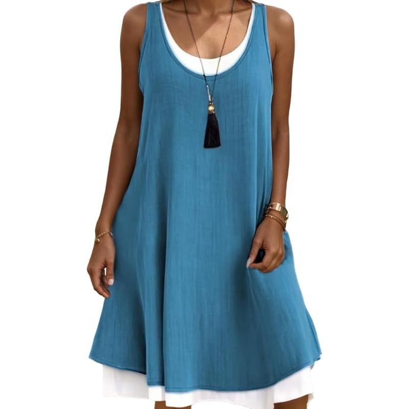 Женская мода лето весна однотонный принт без рукавов с круглым вырезом повседневные платья