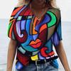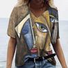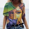 Винтажная женская футболка с V-образным вырезом, модный топ с абстрактным принтом лица 3D, уличный стиль, короткий рукав, футболка