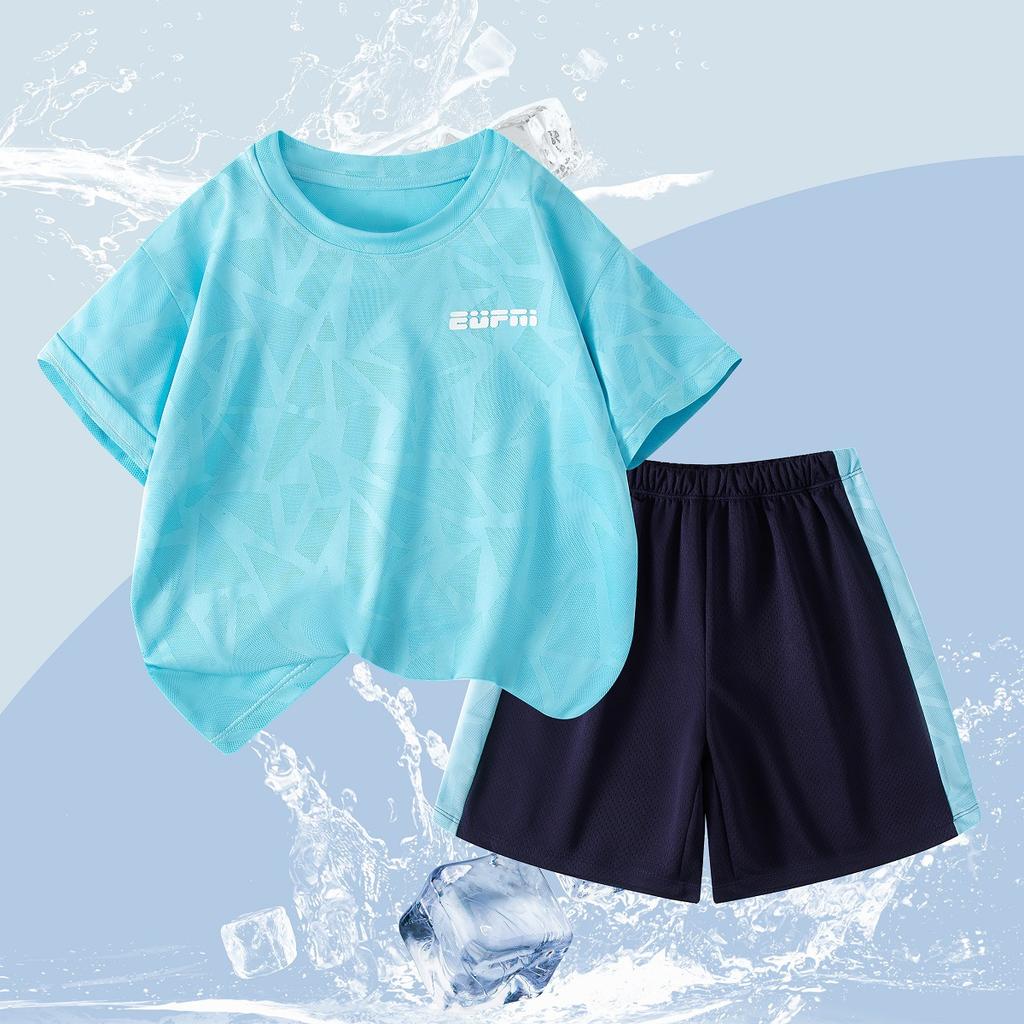 Спортивные костюмы для мальчиков, Летняя одежда, Новые шорты с коротким рукавом, Дышащая футболка для больших детей, Влагоотводящие шорты, Джерси из двух частей