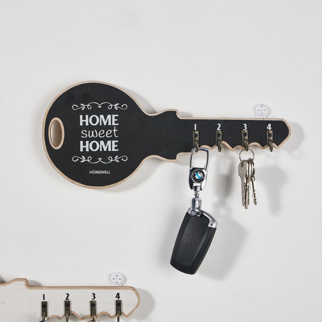 4 крючка, декоративный держатель ключей для стены, дизайн Home Sweet Home, черный
