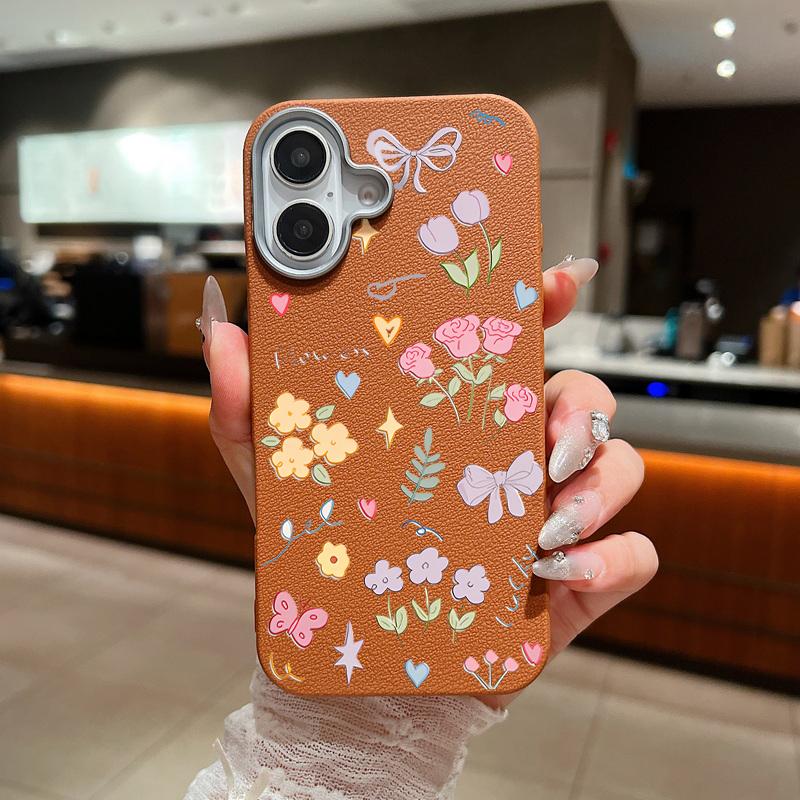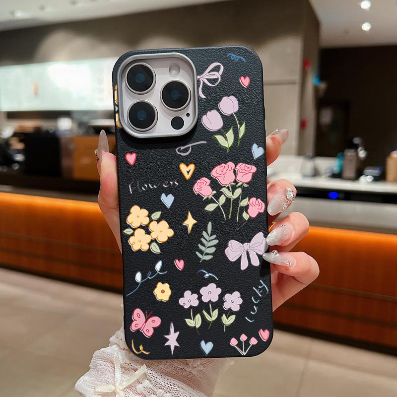 Ударопрочный чехол для телефона с мультяшным цветочным узором для iPhone 16 Pro Max 15 Pro 14 Plus 13 12 11, мягкая текстура кожи TPU, тонкая матовая задняя крышка