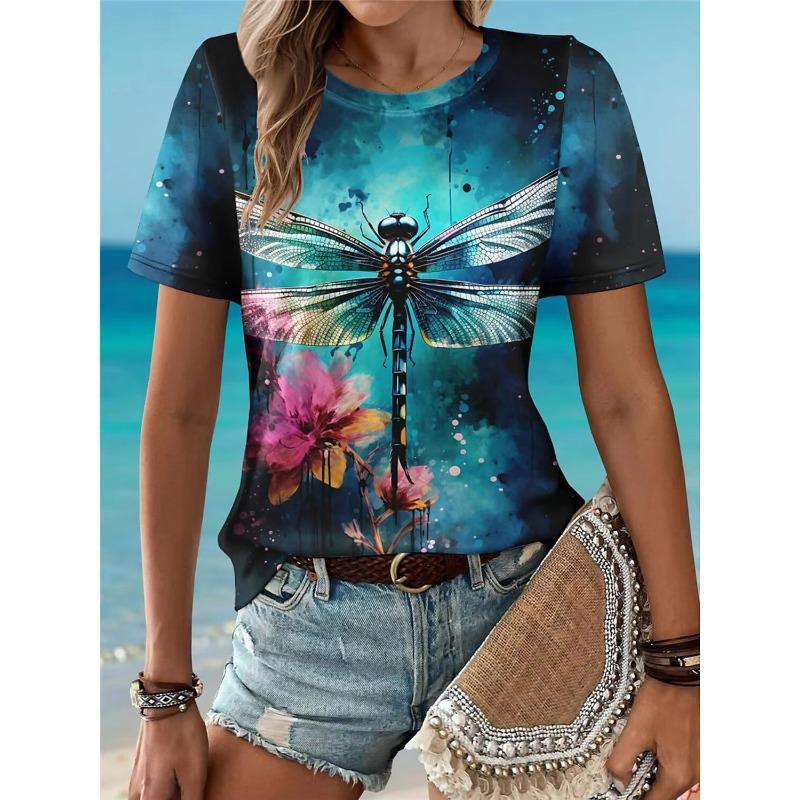 Женская футболка Dragonfly Daily Weekend Print Желтые футболки с коротким рукавом Модные футболки с круглым вырезом Лето и весна Харадзюку
