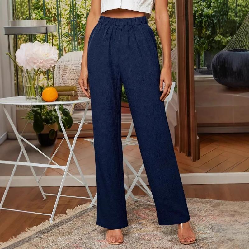 Женские весенне-летние однотонные свободные повседневные широкие брюки с эластичной резинкой на талии — купить товар онлайн с бесплатной доставкой по всему миру!