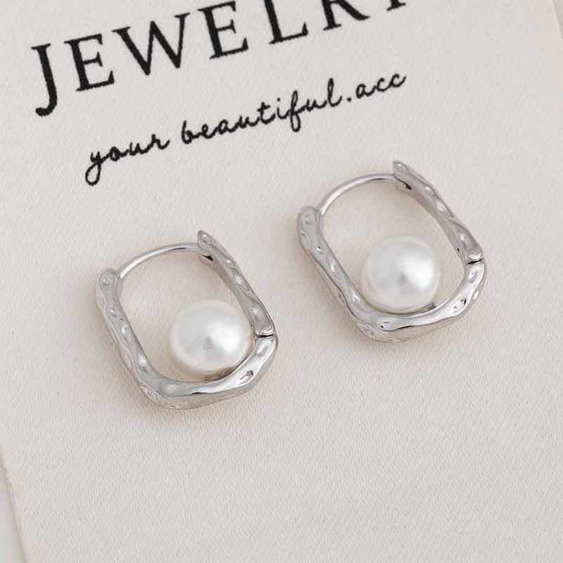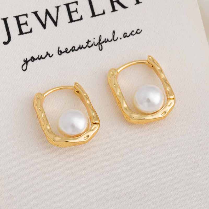 ANENJERY Серьги-кольца с квадратной инкрустацией из жемчуга для женщин, винтажные французские изящные элегантные ювелирные изделия, подарки, оптовая продажа, вечеринка