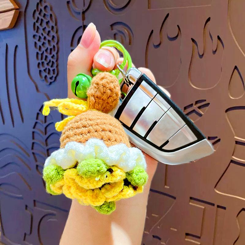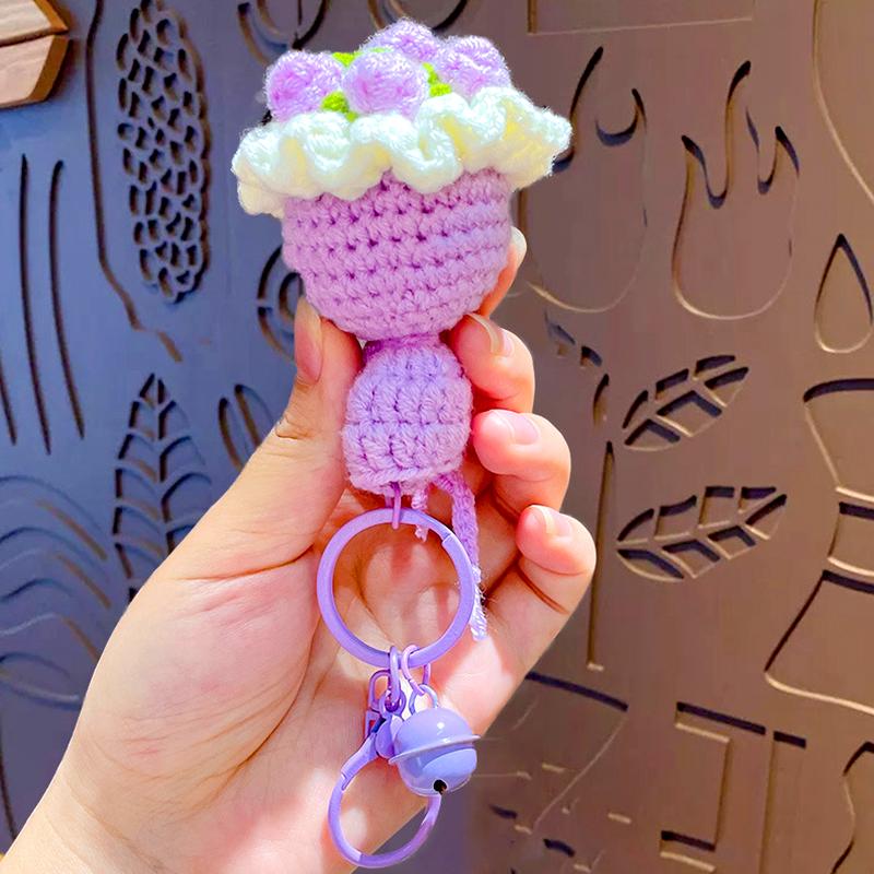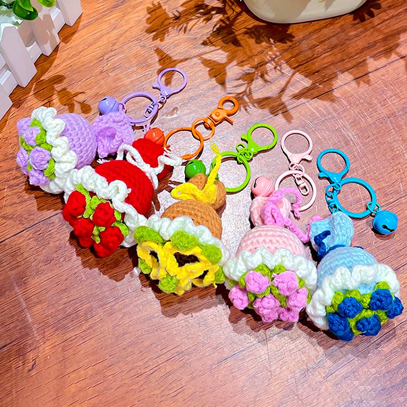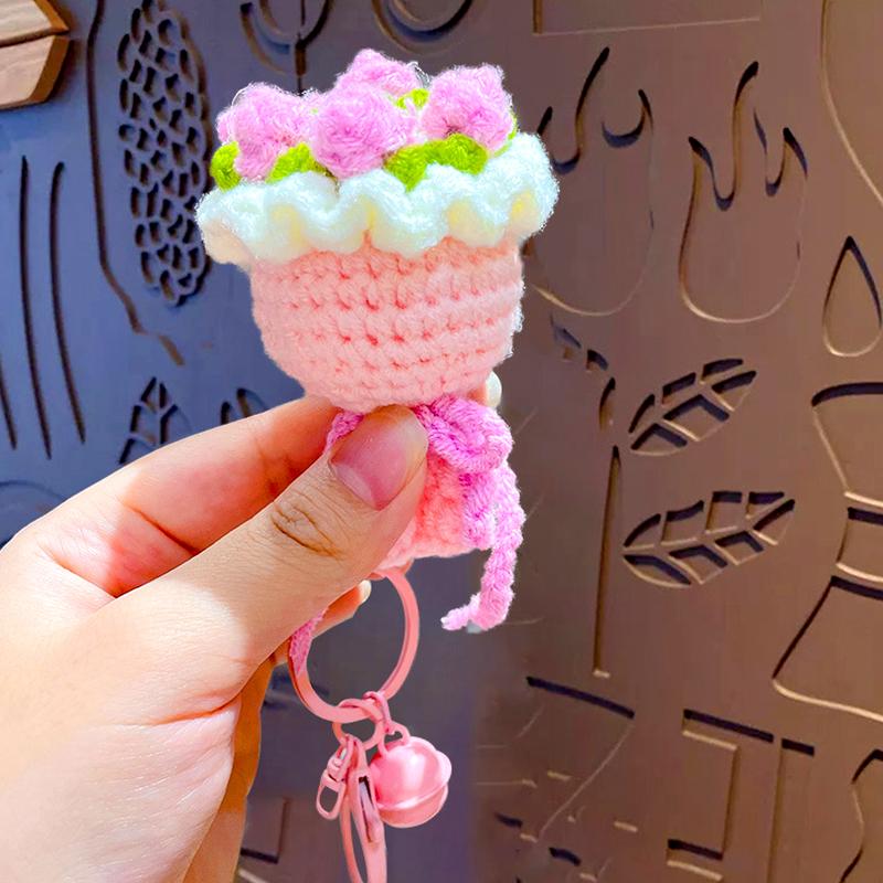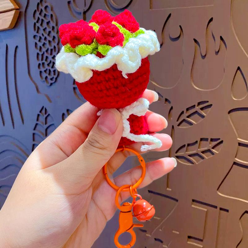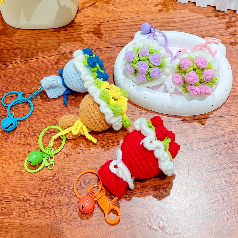 Вязаная крючком роза, маленький колокольчик, креативный брелок, модные держатели для ключей, украшение, букет из вязаных цветов, подарок, аксессуары