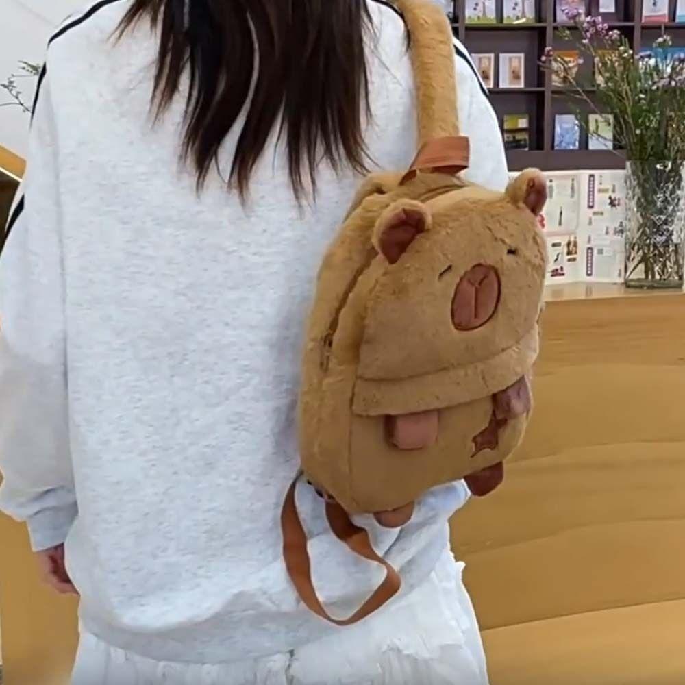 Мягкий плюшевый рюкзак Capybara, милый, большой емкости, школьная сумка, рюкзак с изображением животных из мультфильма «Клубника», для мальчиков