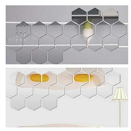 Характеристики: Простота применения, зеркальный эффект, 3D-наклейка на стену, шестиугольная форма