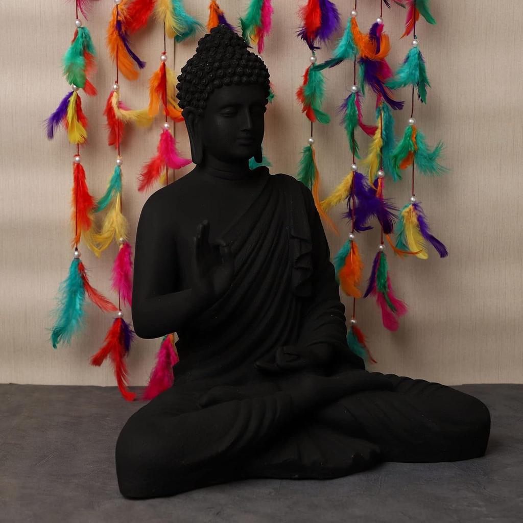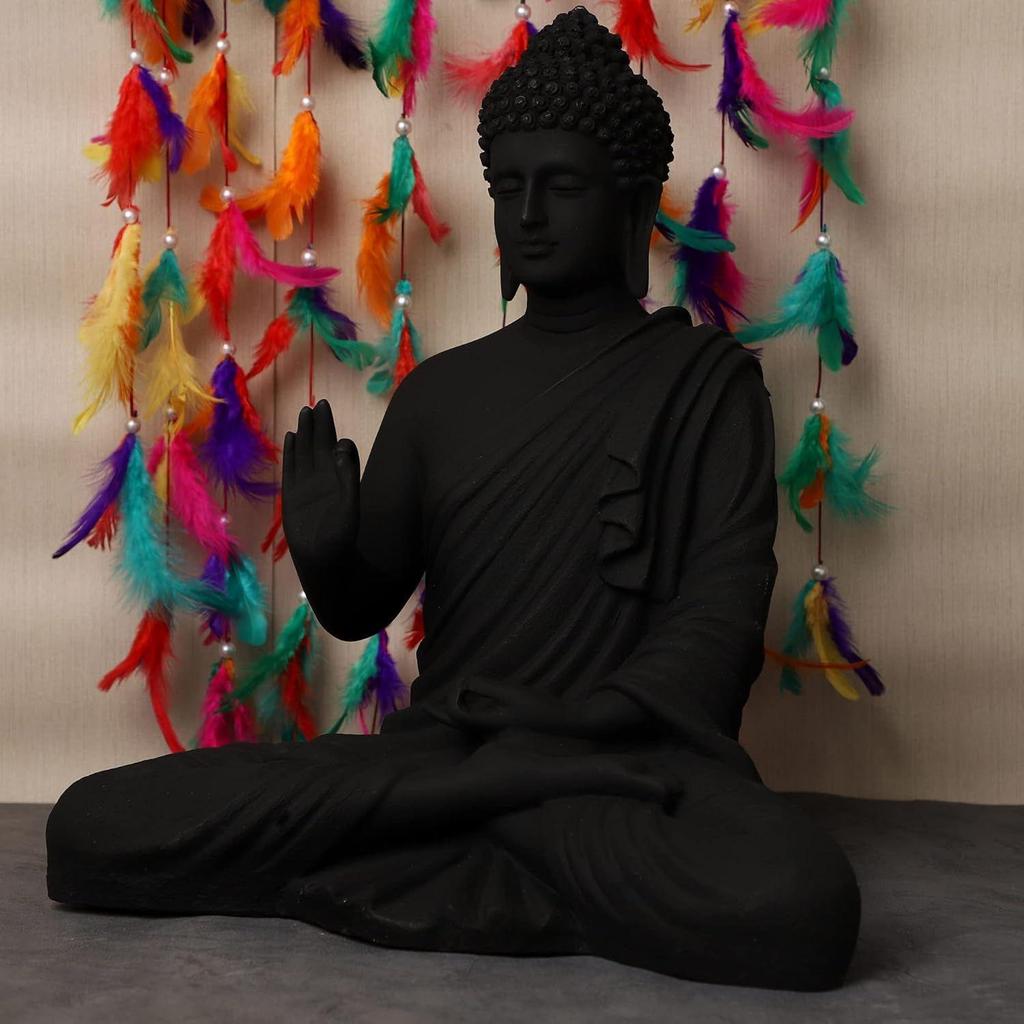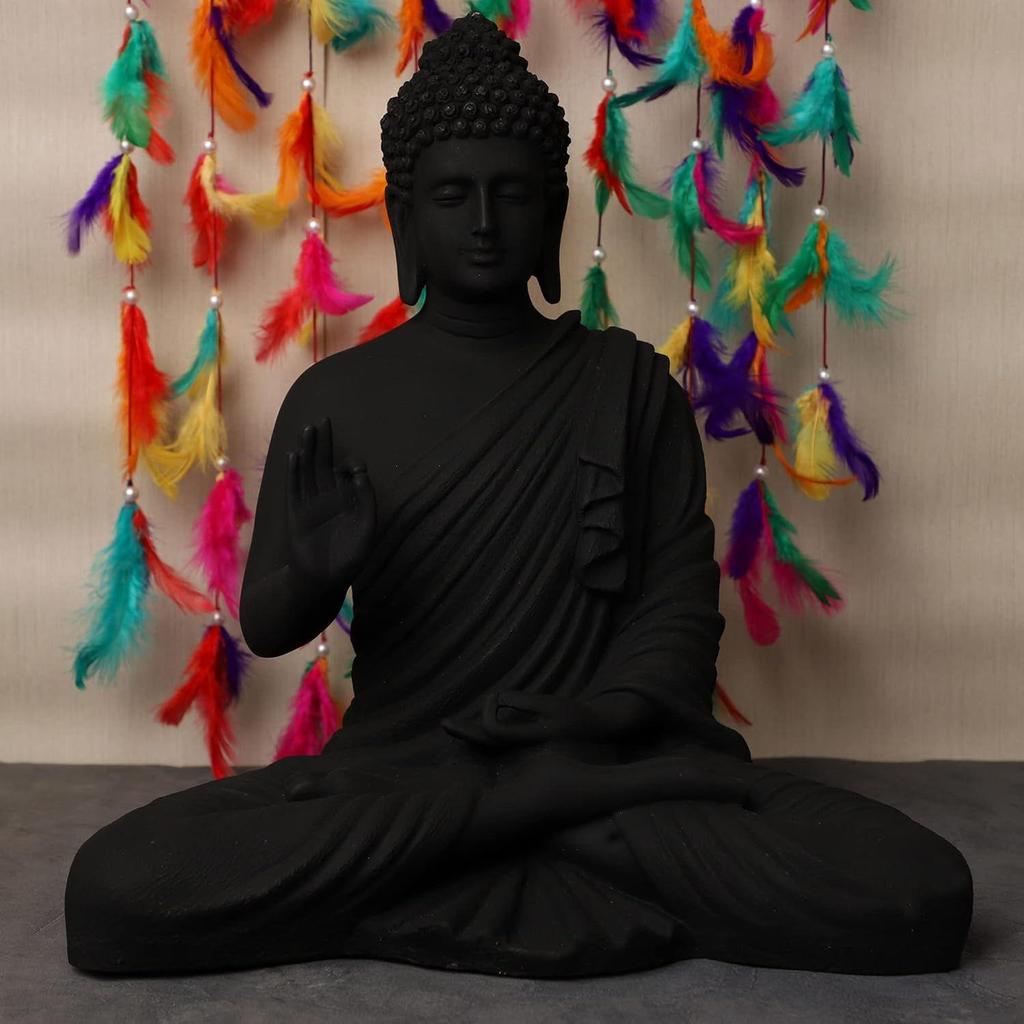 Новая статуя сидящего Будды для декора дома и офиса, статуя идола из мраморной пыли из смолы 15 дюймов (черный), Религиозныйb