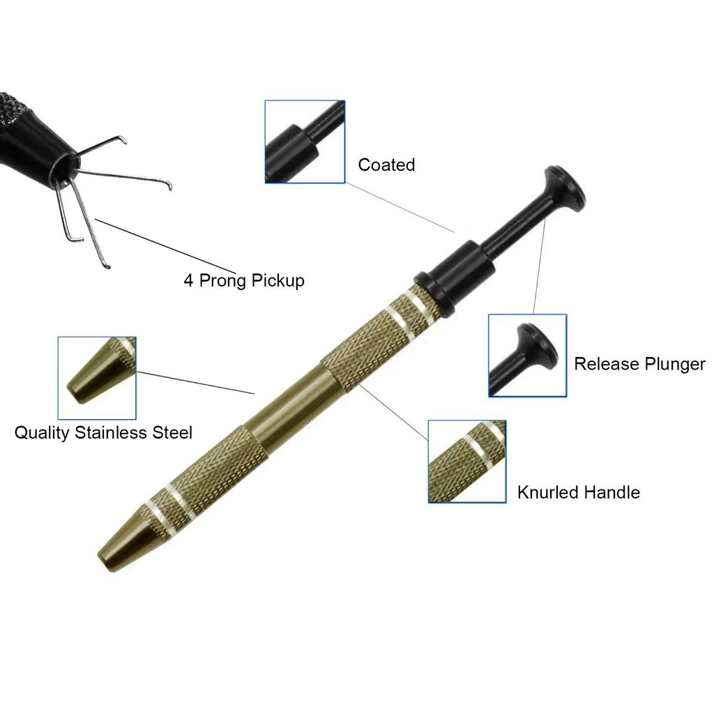 Профессиональный пинцет шприцевого типа с толкателем, 4-х зубый захват для мелких бусин, металлический уловитель для ювелирных изделий, практичный инструмент для захвата
