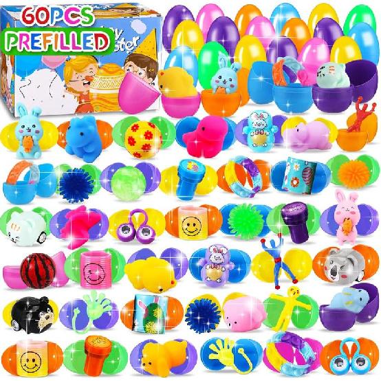 60 предварительно заполненных пасхальных яиц с игрушками - готовый к использованию набор для поиска пасхальных яиц для детей, мальчиков и девочек - сувениры для вечеринок без сладостей