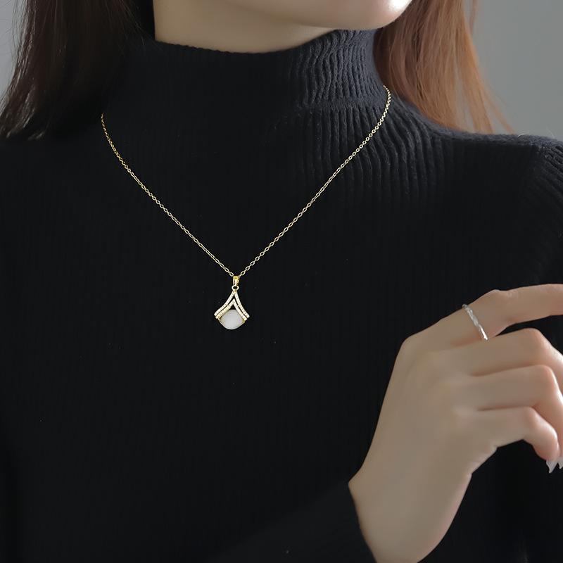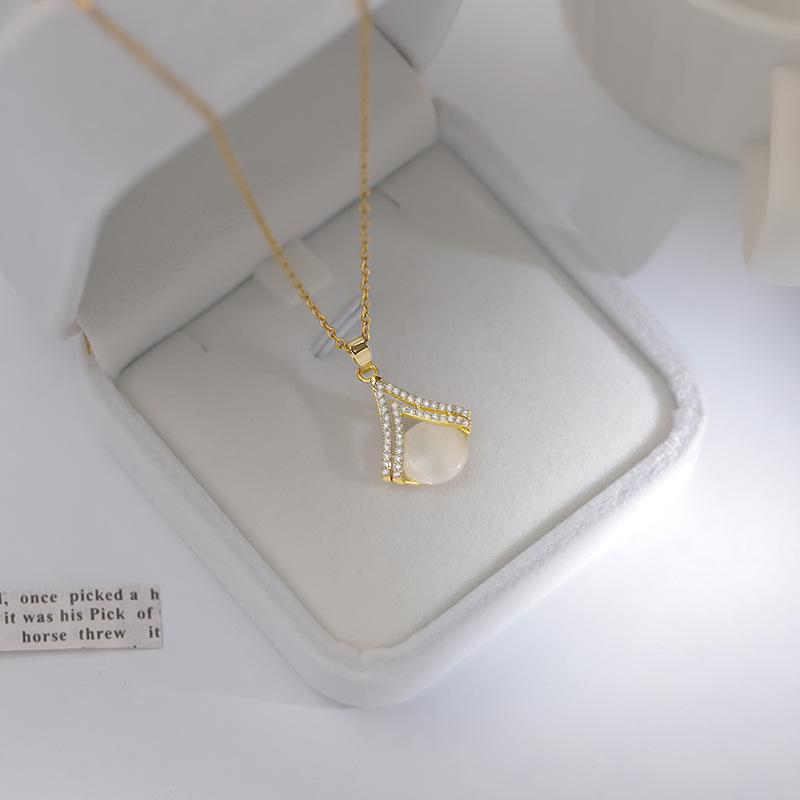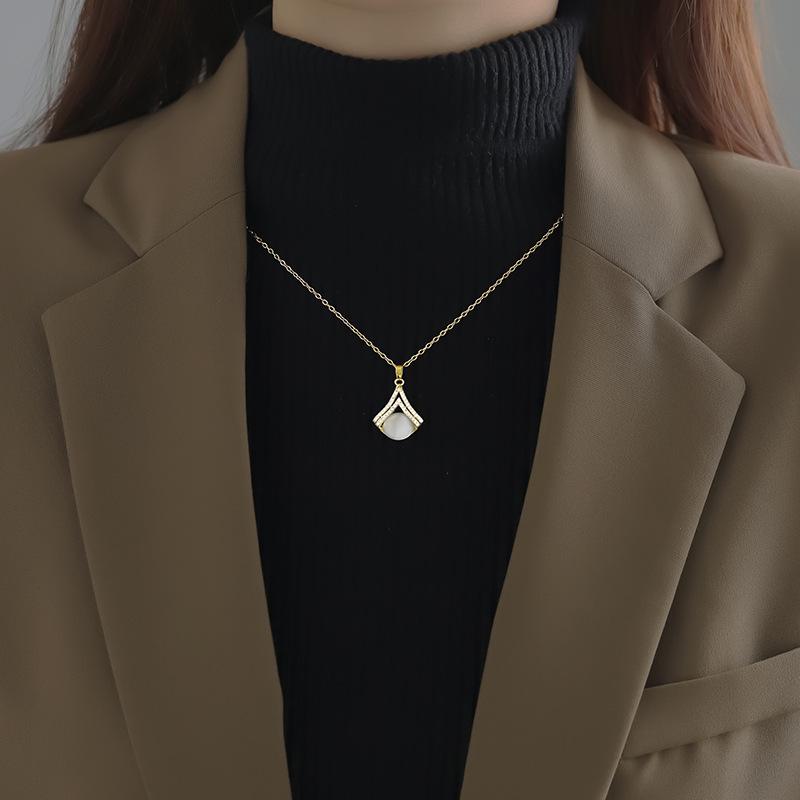 Ожерелье в форме веера «кошачий глаз», легкая роскошная цепочка для свитера, женский высококачественный и холодный стиль, подарок для девушки