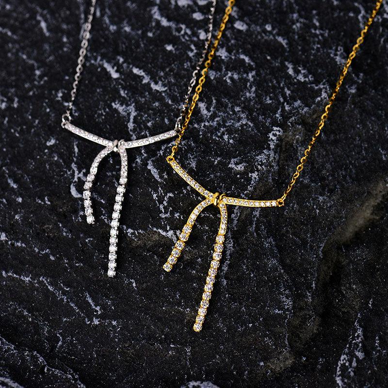 Нежное и милое бриллиантовое ожерелье-бантик с кисточками на ключицу, цепочка на год, ниша, легкая роскошь
