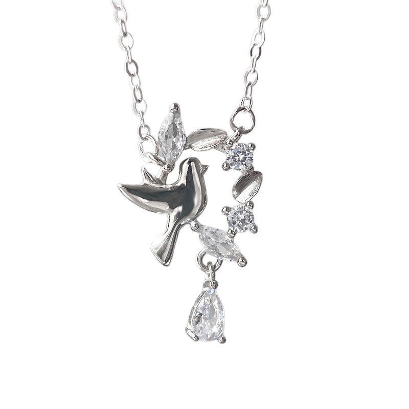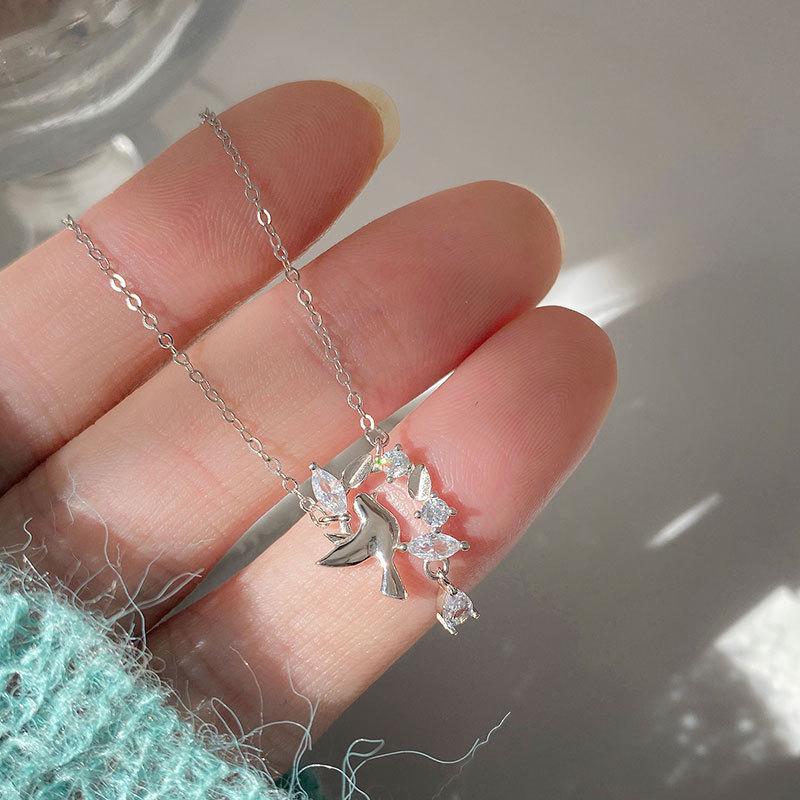 Новое женское ожерелье Lucky Wheat Ears Bird с легким роскошным нишевым дизайном, цепочка с изображением белого голубя на ключице