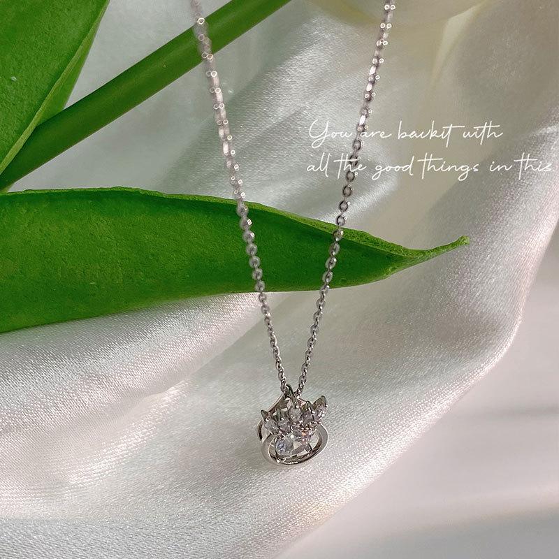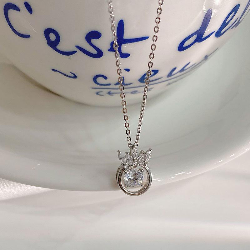 Динамичное ожерелье с короной из циркония и бриллиантовой подвеской, цепочка на ключицу, легкая роскошь, нишевый дизайн, цепочка на шею