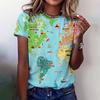 Женские футболки с принтом карты мира, повседневные, с круглым вырезом, летние, свободные, с короткими рукавами, 2024, забавная женская одежда, пуловер