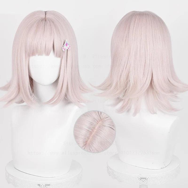 Высококачественный парик для косплея Nanami ChiaKi, короткий серый, розовый, с термостойкими синтетическими волосами, для вечеринки в стиле аниме на Хэллоуин + шапочка для парика