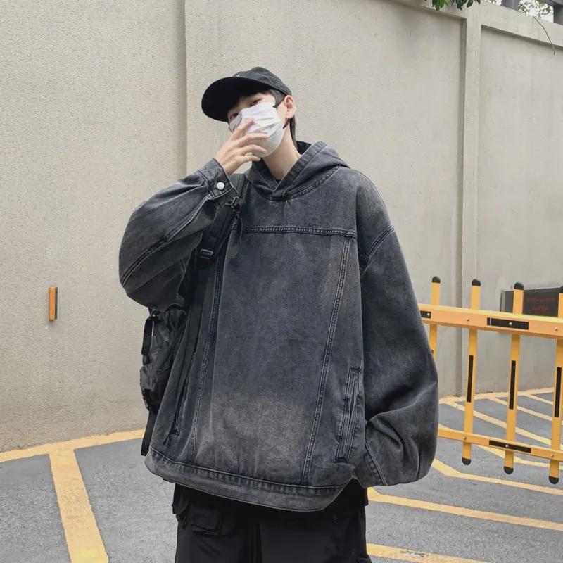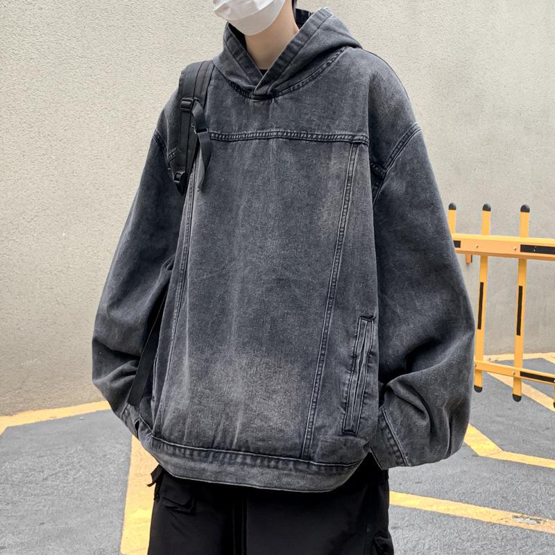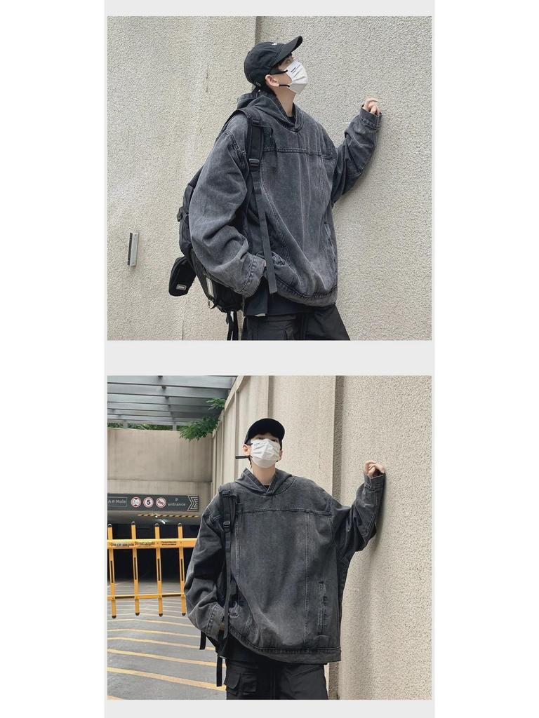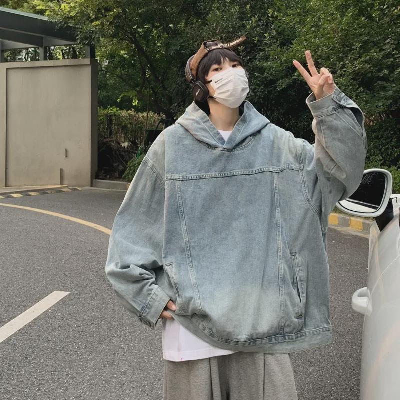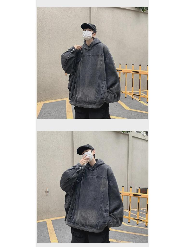 2023 Ретро-джинсовая куртка с капюшоном из выстиранного денима - унисекс в уличном стиле