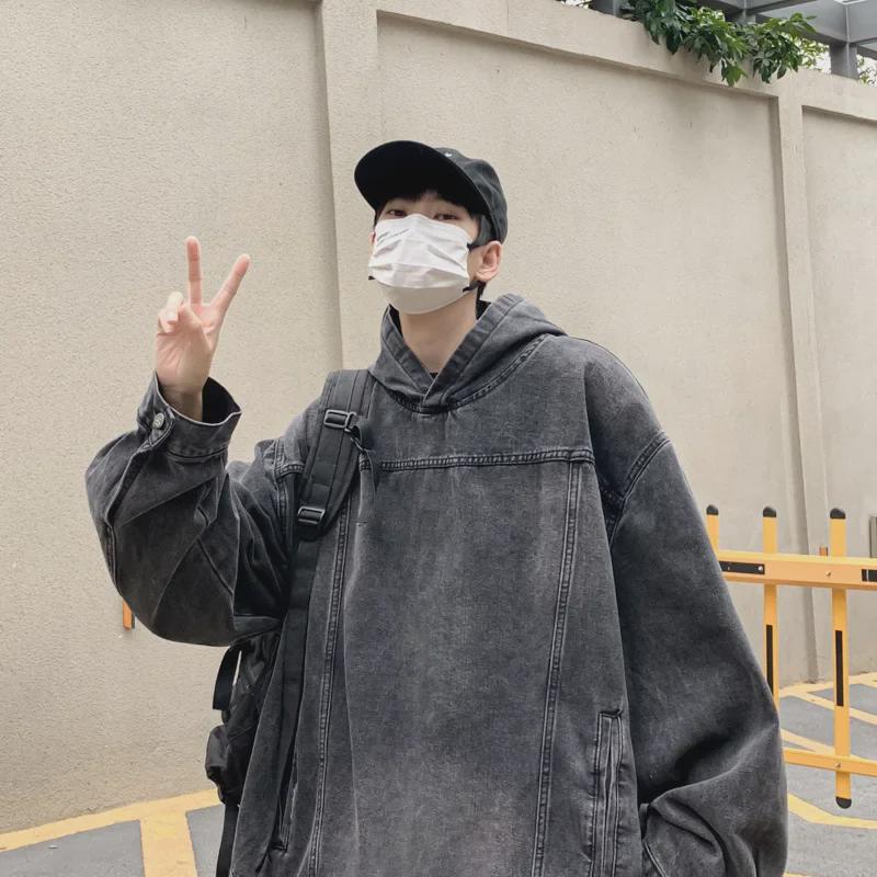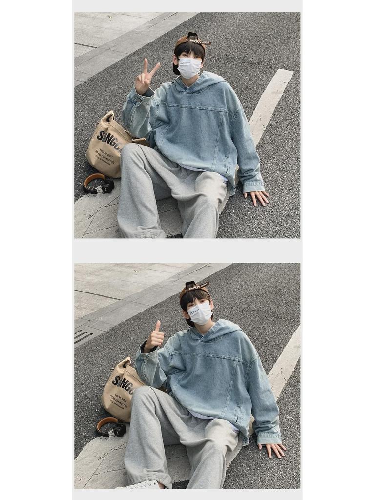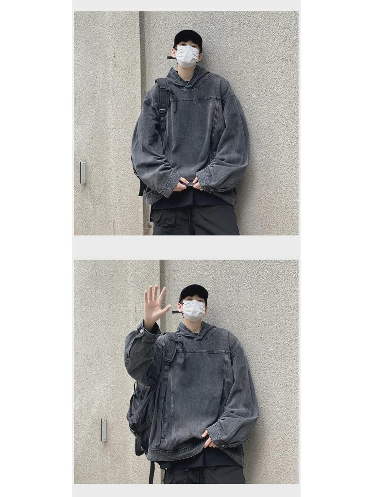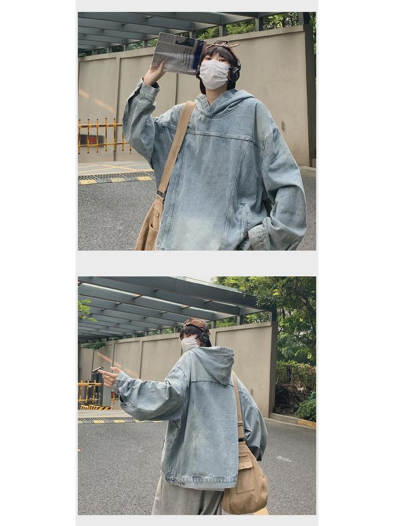 2023 Ретро-джинсовая куртка с капюшоном из выстиранного денима - унисекс в уличном стиле