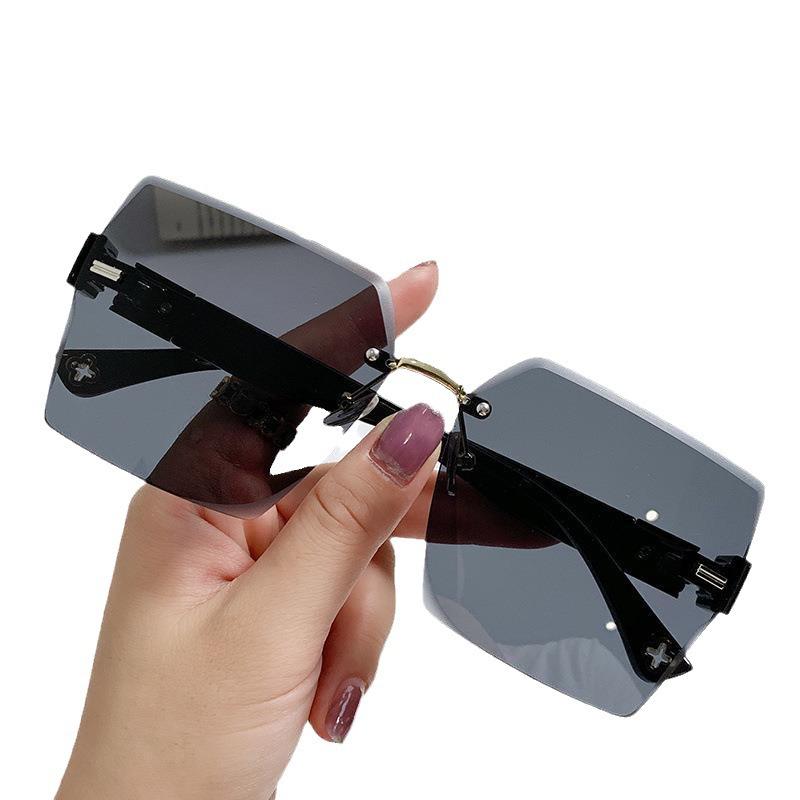 Безрамные очки с отделкой, летние повседневные солнцезащитные очки с большой оправой и модными солнцезащитными очками для женщин