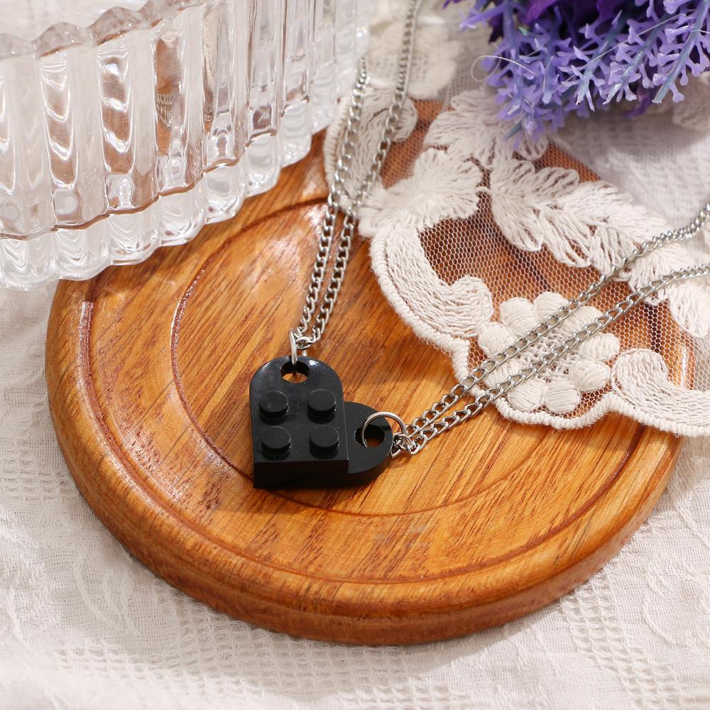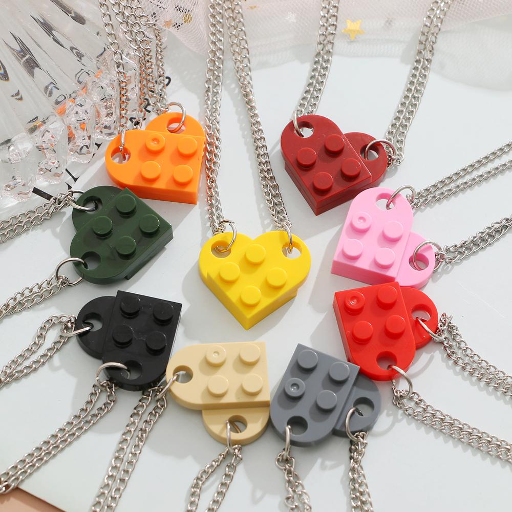 Ожерелье для пары дружбы, пара съемных подвесок из строительных блоков в форме сердца в стиле хип-хоп