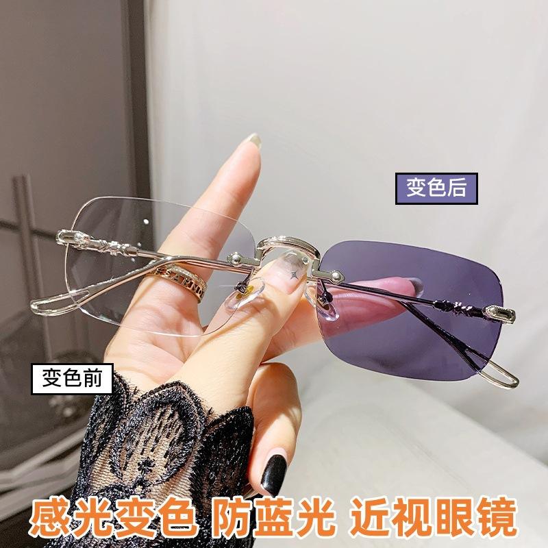 Светочувствительные цветные анти-синие очки без оправы для студентов с плоскими линзами Готовые очки для близорукости