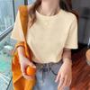 VEZFAA Женские модные повседневные летние весенние блузки и рубашки с круглым вырезом с короткими рукавами