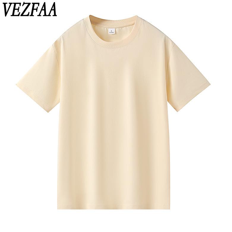 VEZFAA Женская мода однотонный принт повседневные летние весенние короткие рукава с круглым вырезом блузки и рубашки