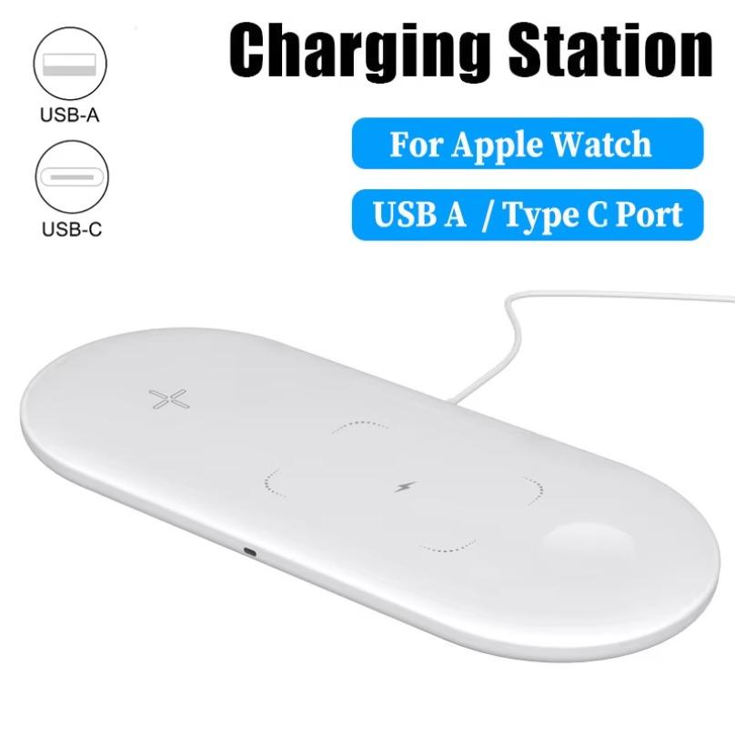 3 в 1 быстрое беспроводное зарядное устройство подставка настольная зарядная станция USB Type C для Samsung iPhone Watch 2-8 SE Airpods Pro — купить товар онлайн с бесплатной доставкой по всему миру!