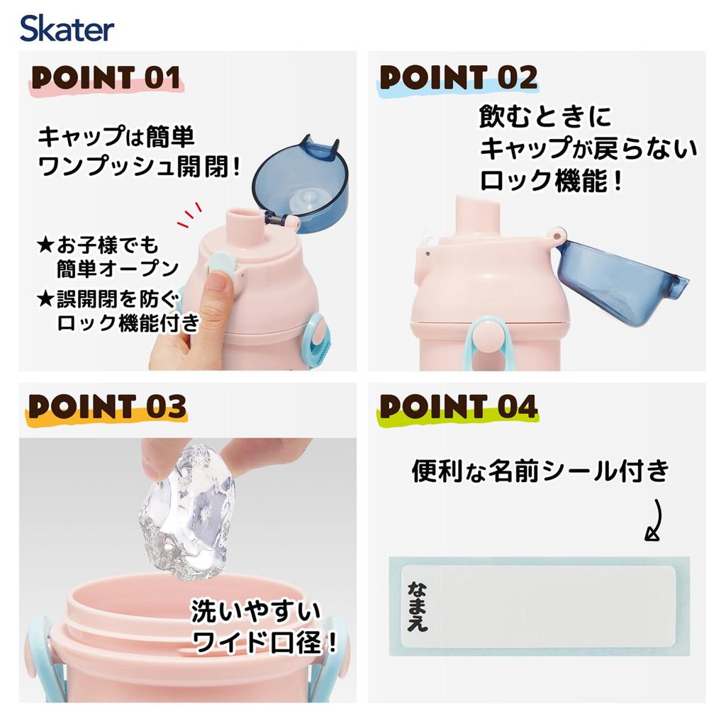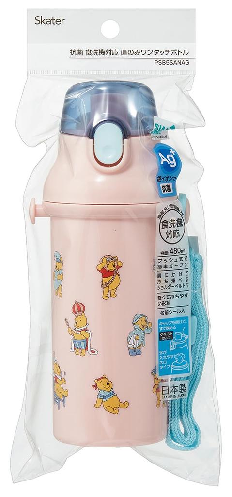 Skater Пластиковая бутылка для воды 480 мл Открывание одним нажатием Антибактериальная Безопасная для детей Легкая Антибактериальная обработка Сделано в Японии Дисней Винни-Пух
