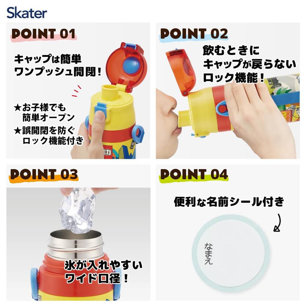 Skater Stainless Steel Water Direct Cup Tomica For Thermal Cold Water Sports Water Children's Bottle, 2-way, Drinking, 470ml, Drinking, 430ml, 24,