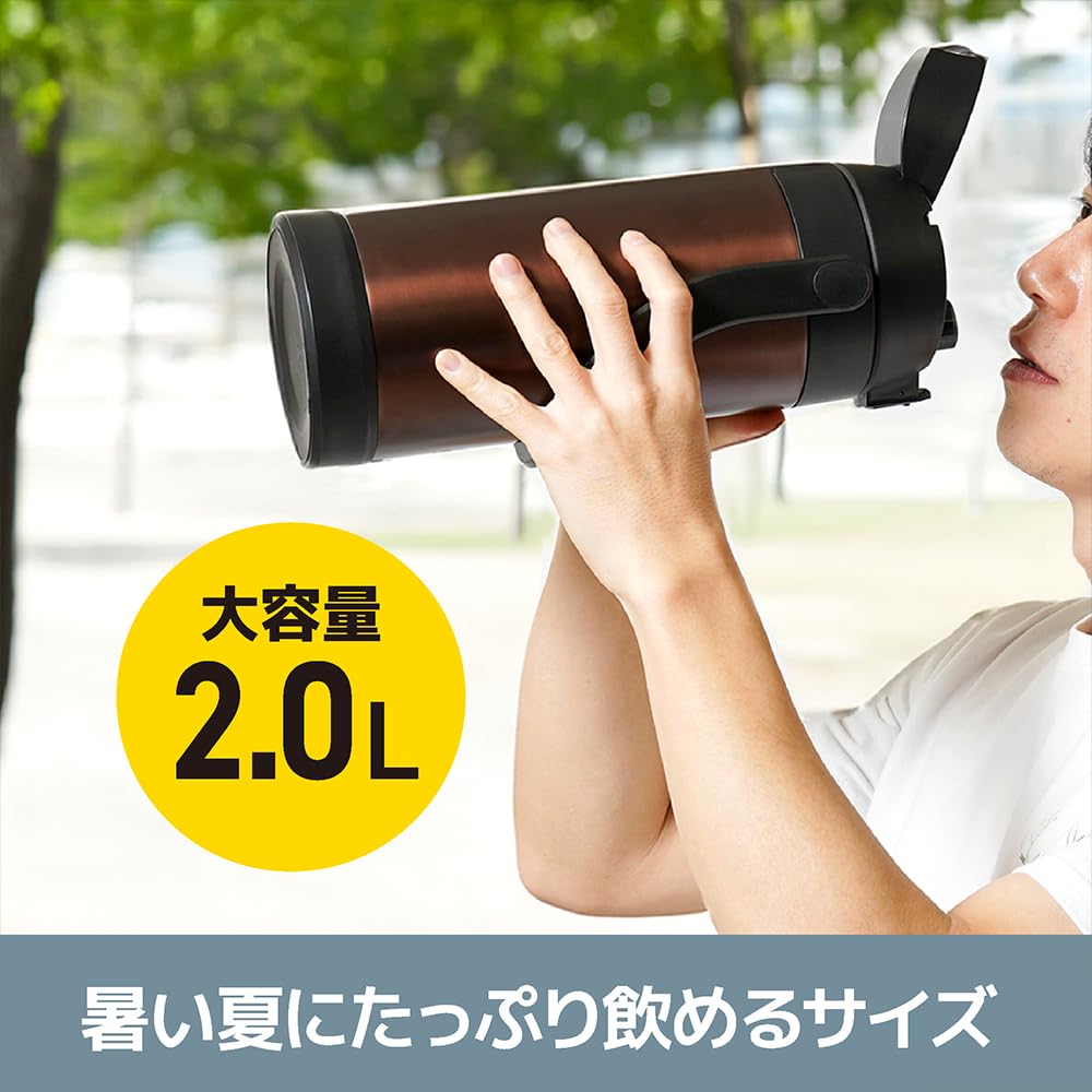 FREEAP Insulated Water Large 2 Sports Wide Easy to Bottle, Capacity, Liters, Jug, Mouth, Clean, Outdoor, K-10818 (Metallic Gray)