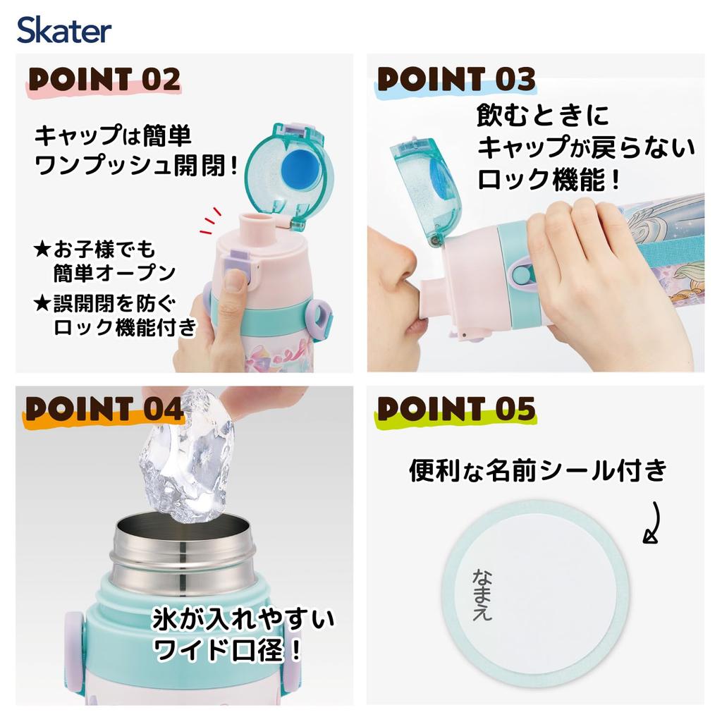 Skater Stainless Steel Water Direct Cup Disney Thermal Cold Water Sports Water Children's Bottle, 2-way, Drinking, 470ml, Drinking, 430ml,