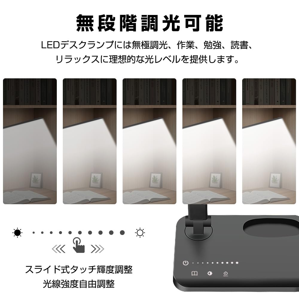 ♥【Five Lighting Modes/Touch Toning Temperature】The LED desk lamp has non-polar dimming and 5 lighting modes, providing the ideal light level for working, studying, reading and relaxing. 5000K~6000K: Warm color similar to daylight, helps you concentrate your mental power, and is perfect for work, study, and other situations where high concentration is required! 4500K: Natural light to help people relax, calm down, and think about things like reading! 3000K~4000K: Create an atmosphere and light night with warm and soft colors close to the evening light! Sensitive touch control panel allows you to switch lighting modes freely