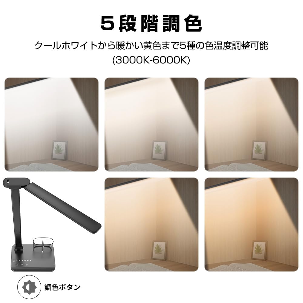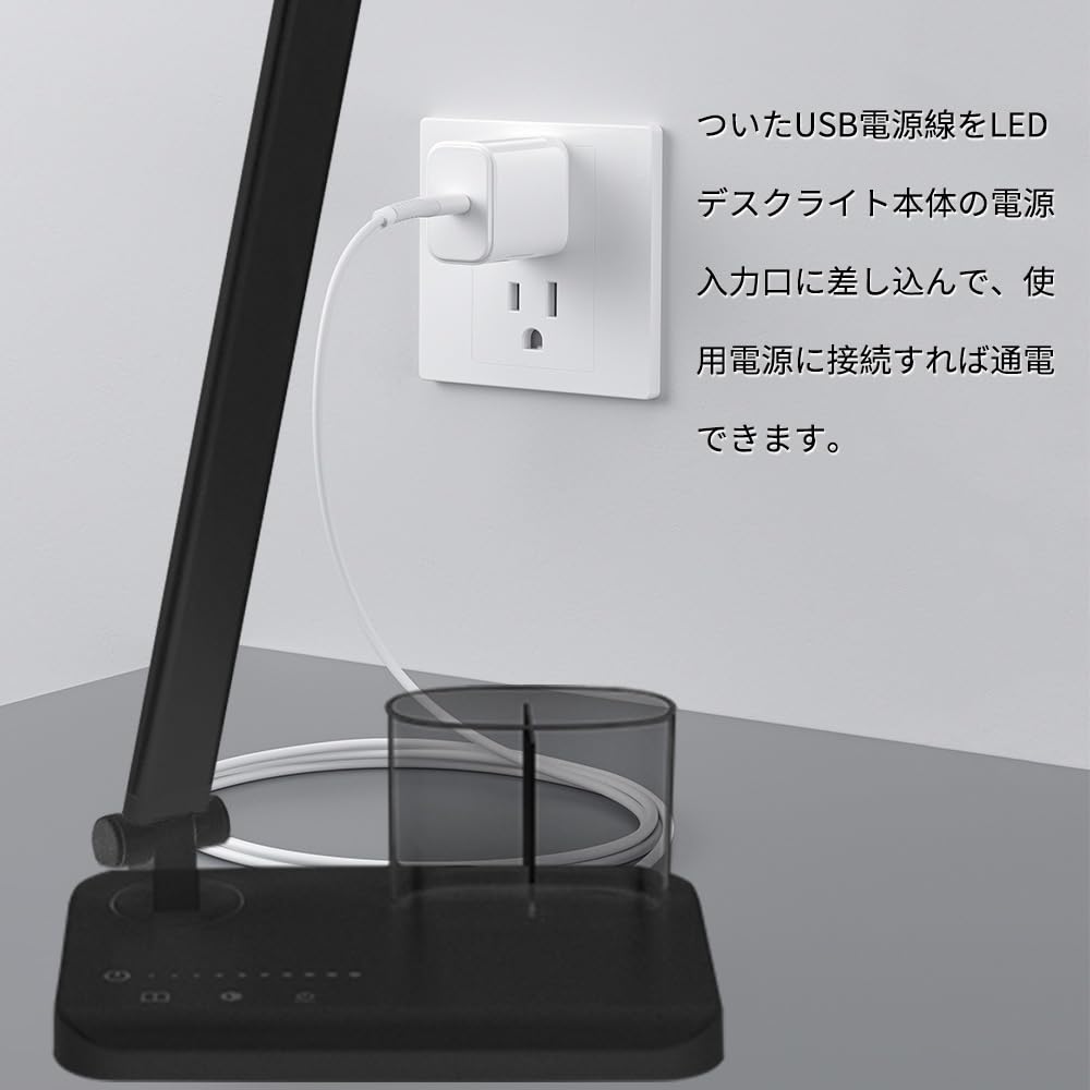 ♥ [High-quality materials/Set contents] Made of high-quality materials, it suppresses flickering well, has a color rendering index of Ra≥80, and displays beautiful, real colors, making it a light that is easy on the eyes. The light's arm, head, and base can be moved in four locations, allowing for high mobility and allowing for neat storage even when the light is not in use. Set contents: LED desk light *1, USB charging cable *1, pen holder *1, instruction manual *1.