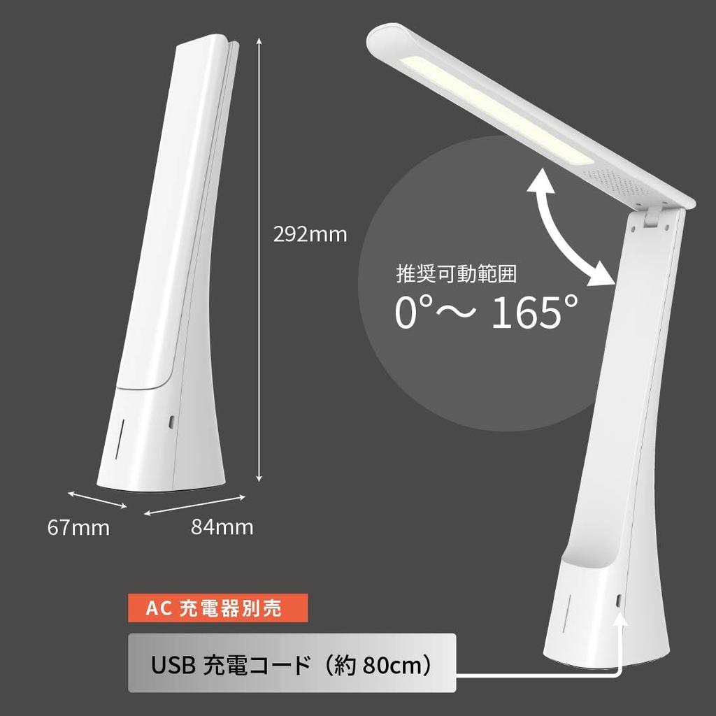 Ohm Electric Настольная лампа светодиодная беспроводная перезаряжаемая с регулируемой яркостью, белая, складная, компактная, экономящая место, OHM DS-LD24BG-W 06-3683