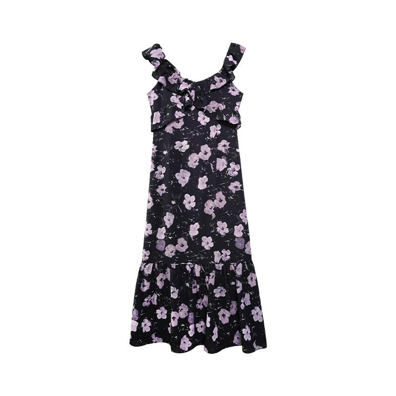2025 Ранняя весна Французский ретро Элегантное платье с квадратным вырезом и цветочным принтом C3018