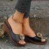 Женские босоножки на танкетке с цветочным декором, летняя обувь без шнуровки с открытым носком, удобные уличные шлепанцы на мягкой подошве