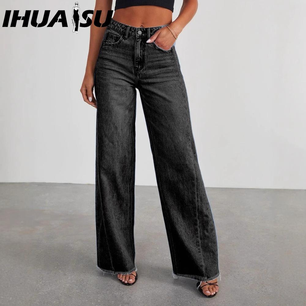 IHUASU Свободные широкие джинсы с боковыми швами и подгибкой для женщин