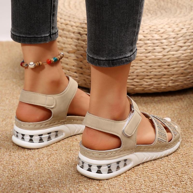 Летние женские сандалии, новые модные сандалии на танкетке с открытым носком для женщин, уличная повседневная пляжная обувь, женские сандалии с блестящими водными бриллиантами