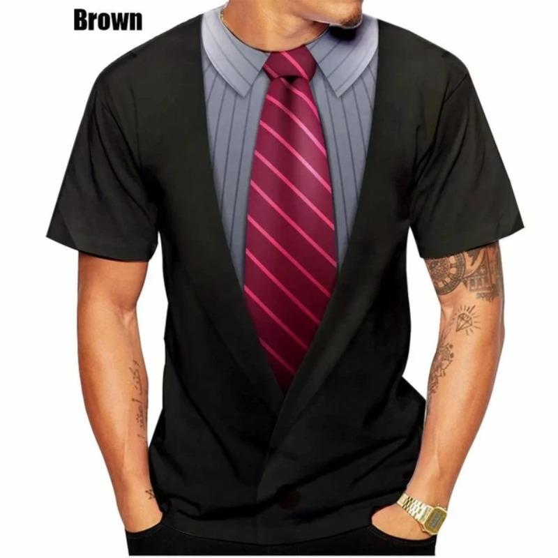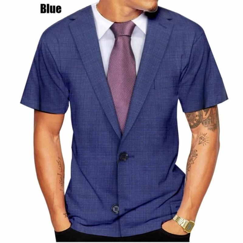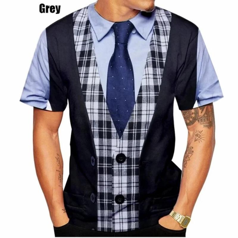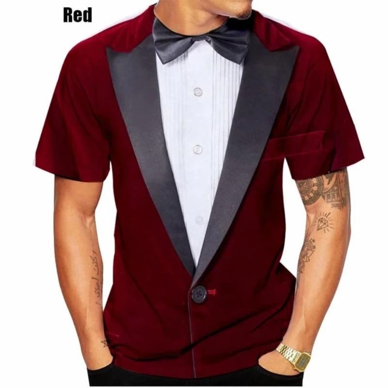 Поддельный костюм с галстуком-бабочкой и 3D принтом, мужская футболка со смокингом и галстуком, летняя одежда, топы 3xl, уличная повседневная спортивная негабаритная мужская одежда