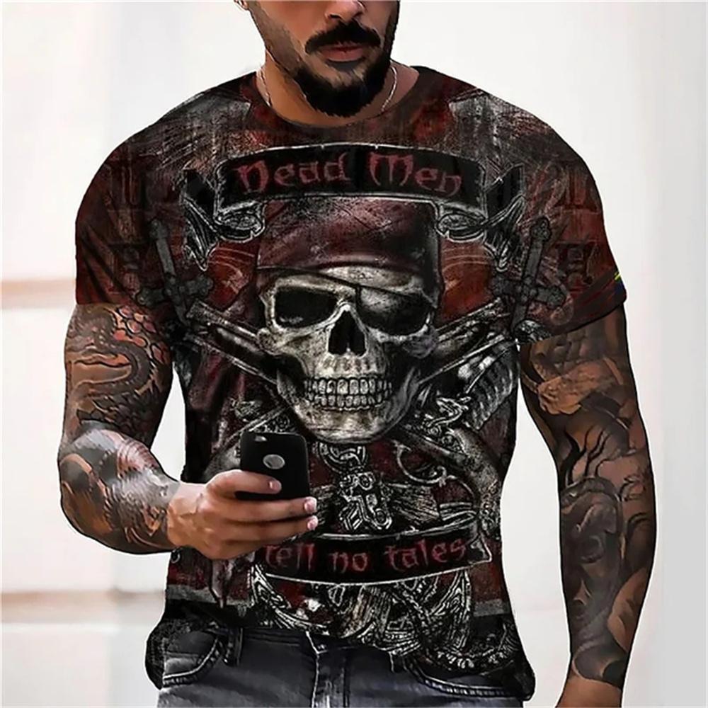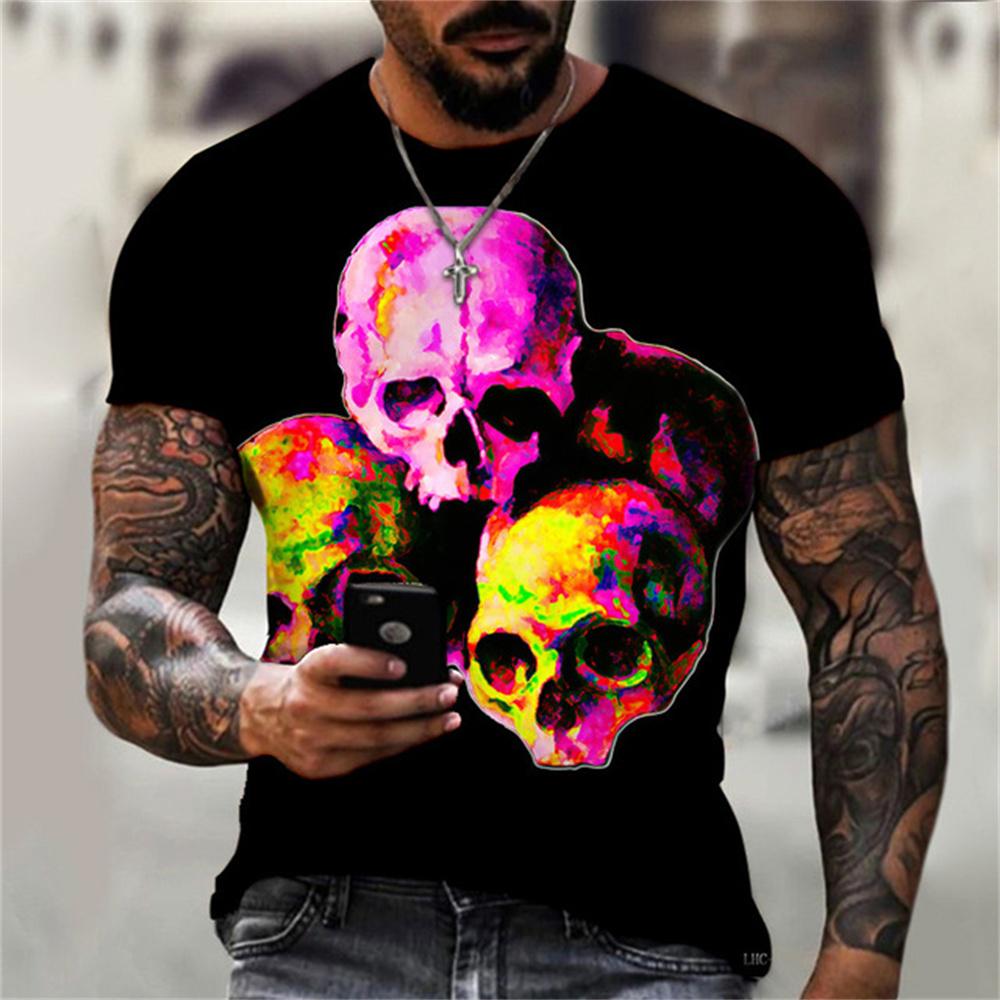 Summer Men's Fashion Casual O Neck Vintage T Shirt Clothing 3d Horror Skull Print T Shirt Harajuku Oversized Short Sleeve Top