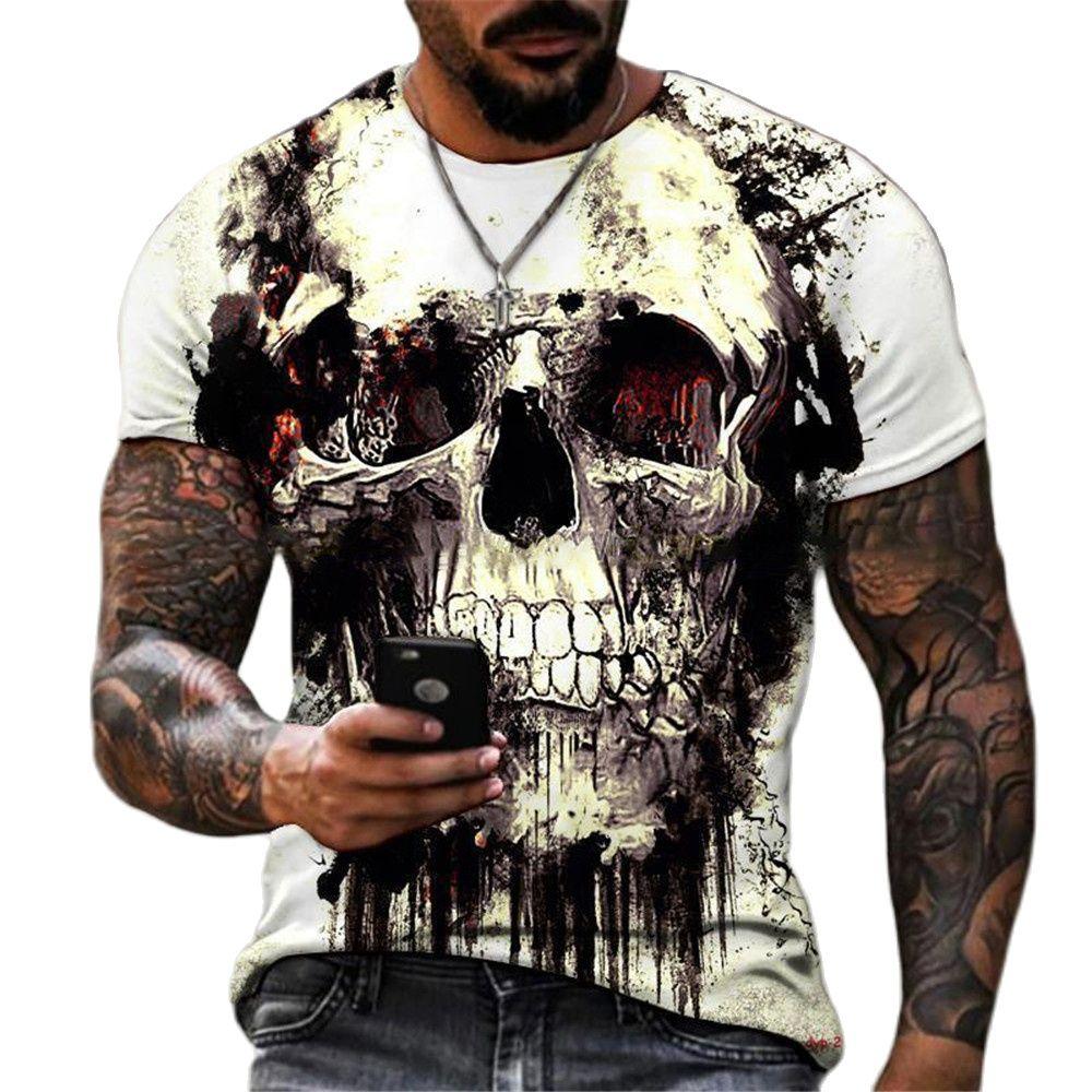 Модная мужская футболка с 3D принтом черепа, летняя футболка с круглым вырезом и коротким рукавом, уличная футболка большого размера, свободные топы, футболка, мужская одежда